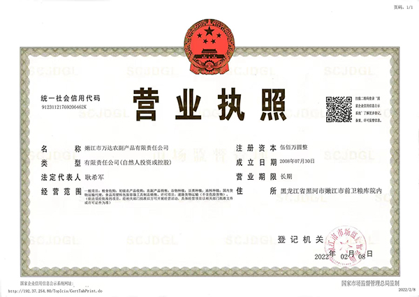 嫩江縣市萬達(dá)農(nóng)副產(chǎn)品有限責(zé)任公司座落在嫩江縣前衛(wèi)糧庫院內(nèi),是集辦公,收購及銷售一站式綜合性企業(yè)。公司現(xiàn)有固定員工13人,臨時員工20人。我公司先后與北京三河匯福糧油,云南云天化,益海嘉里集團。